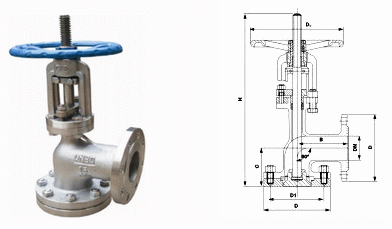 不锈钢角式放料阀主要由阀体、阀座、支架、连接套、丝杆、阀芯和手轮等零部件组成,是我公司在上展式或下展式放料阀基础上进行改进的产品,其阀体成90度角,进出口法兰大小相同,阀体内腔装有耐冲刷、耐腐蚀的密封圈,在开启阀门瞬间,可以保护阀门不被介质冲刷、腐蚀,并对密封圈进行特种处理,其阀瓣斜面于阀座角形成线密封,阀瓣启闭时有手轮带动螺母,螺母带动丝杆(上下运动有夹板定向,丝杆不会出现旋转)向反应釜内伸,其底部法兰可拆卸,并焊接到反应釜底部起放料作用,因此消除工艺介质通常在容器出口残留现象。