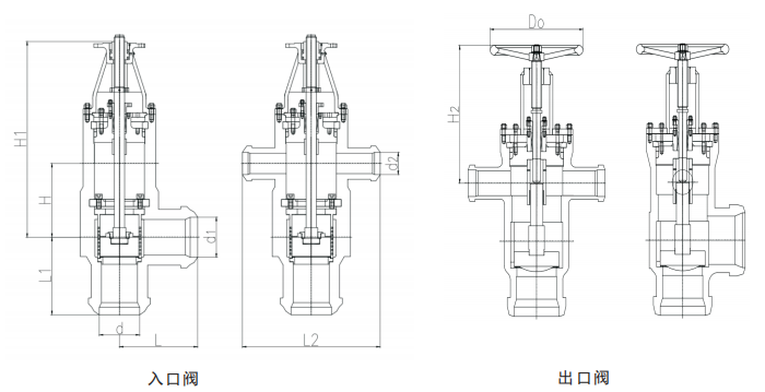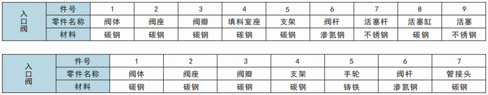 入口阀呈角式布置,外置活塞式结构,给水由侧面引入,向下进入高压加热器,阀上方由两个旁路管道与出口的止回阀的旁路旁管相接。阀门有上下两个密封面,高压加热器正常运行时,入口阀开启,阀瓣上浮,与上密封面接触。当高压加热器发生故障时,而不经过高压加热器,使高压加热器解列。入口阀主要由上下两个阀座,下阀座镶焊在阀体上,上阀座与填料室是一体,装在阀体上,可以拆卸。阀瓣上下两个密封面均采用硬质合金堆焊而成,阀杆表面经氮化处理、抗擦伤、耐腐蚀。活塞缸为焊接件,缸体内表面经磷镍镀层处理,有良好的防腐及耐磨性。活塞由“O”型密封环密封,支架起支撑活塞缸及连接阀体的作用,上部有两个焊接法兰,其内孔与活塞下腔连通。一个为进冷凝水管道,一个为排冷凝水管道。