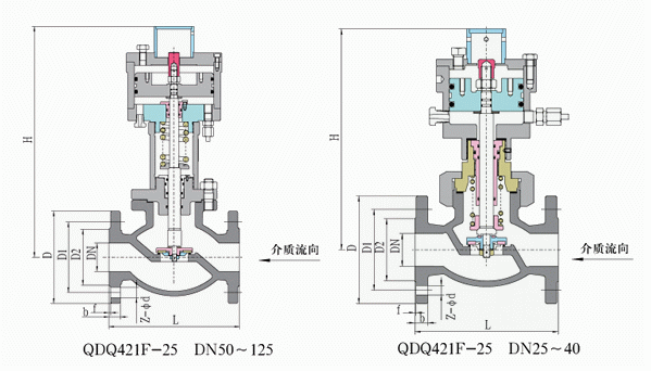 | 压力等级 | 2.5/4.0Mpa | 气缸工作压力 | ≤2.0Mpa |