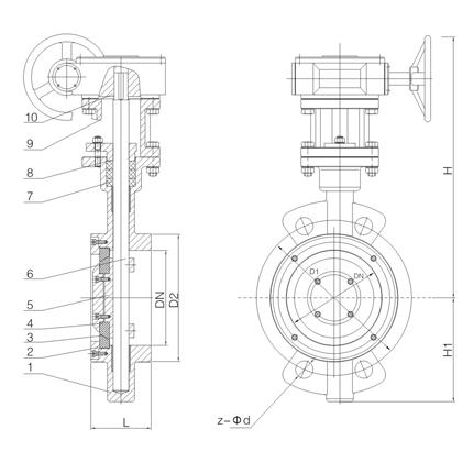 三偏心陶瓷蝶阀连接尺寸: