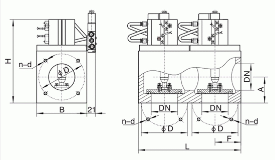 三通式气动高真空挡板阀连接尺寸:
