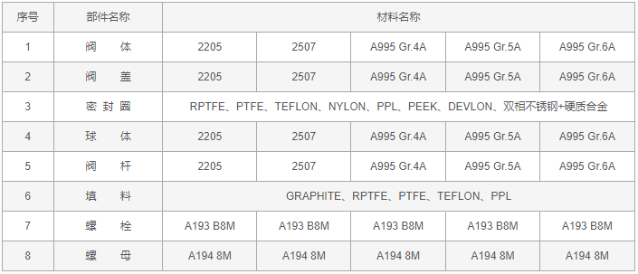 双相钢Y型三通球阀零件材料: