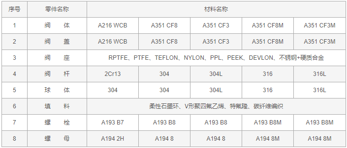 L型三通球阀零件材料: