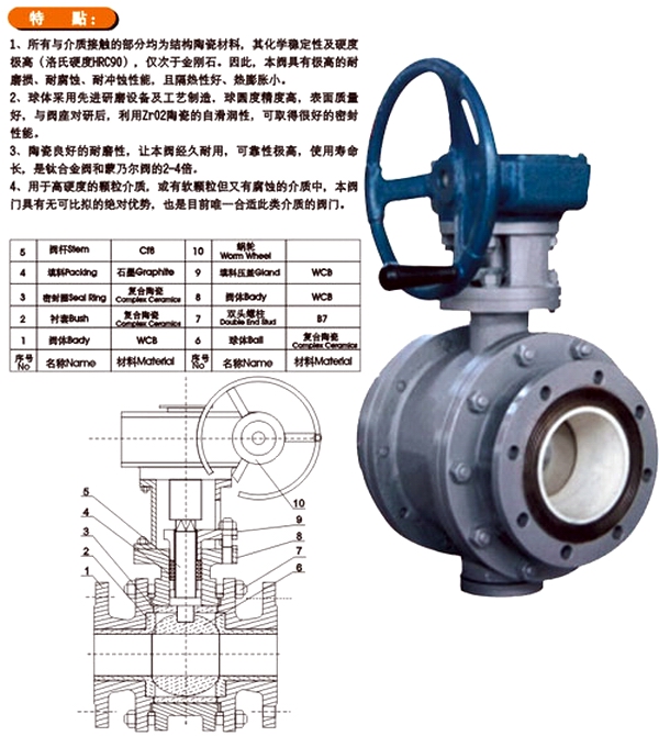 提示:本文中所有文字、数据、图片均只适用于参考,需要了解更详细的【蜗轮陶瓷球阀】参数、选型、价格等请联系我们,我们将竭诚为您服务!