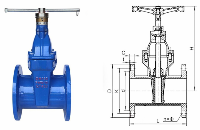 1、安装方便:安装后拿附件扳手,套在阀门顶部键槽内打开(或关闭)阀门的闸板,顺时针关,逆时针开。