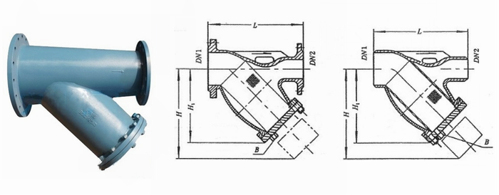 变径Y型过滤器与普通Y型过滤器功能相似,只是进出口管直径不一样,其进口公称直径比出口公称直径大一到两个档级,如:进口法兰尺寸为DN100,出口法兰则为DN65或DN80,该过滤器主要适用于安装在进出口管直径不相同的泵入口管道上过滤流体中所含的固体颗粒,从而保证泵设备的正常运行。