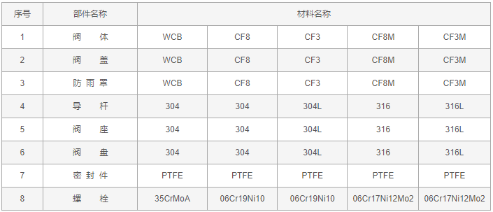 全天候防冻呼吸阀零件材料: