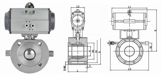气动对夹式保温球阀外形结构图: