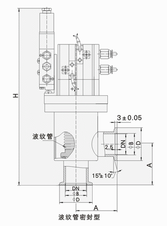 GDQ-J(b)/KF型系列气动高真空挡板阀轴封为波纹管密封。该阀以压缩空气为动力,通过电磁换向阀改变气路方向,在失去电源或压缩空气时,阀门将依靠弹簧力自动关闭,达到在真空系统中接通或切断气流的目的。本阀具有工作稳定、密封可靠、寿命长等一系列优点,是真空设备的自动化首选阀门之一。阀门有常开和常闭功能,可选配磁性开关信号控制和防暴电磁阀装置。适用的工作介质为空气及腐蚀性气体。