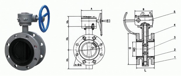 法兰式衬胶蝶阀外形结构图: