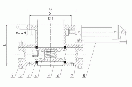 气动耐磨陶瓷圆盘阀外形结构图: