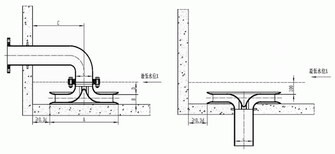 3、安装要求:旋流防止器的外缘与水池池壁应至少留有0.3d的间隙,d为吸水管到的公称尺寸。
