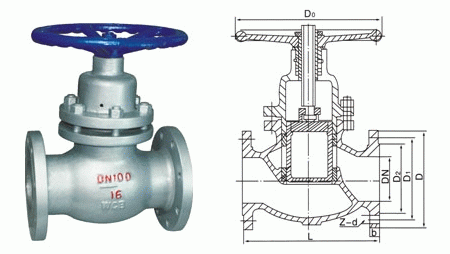 法兰柱塞式闸阀外形结构图: