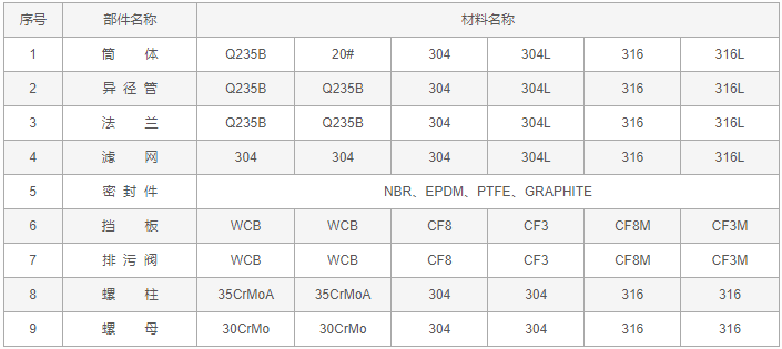 全自动反冲洗排污过滤器零件材料表: