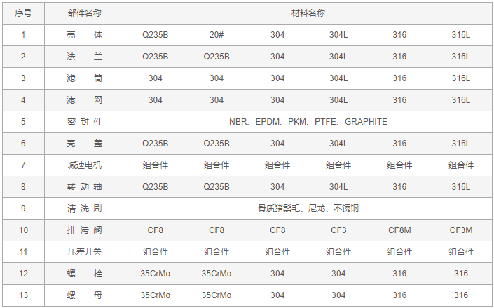 全自动清洗Y型过滤器零件材料: