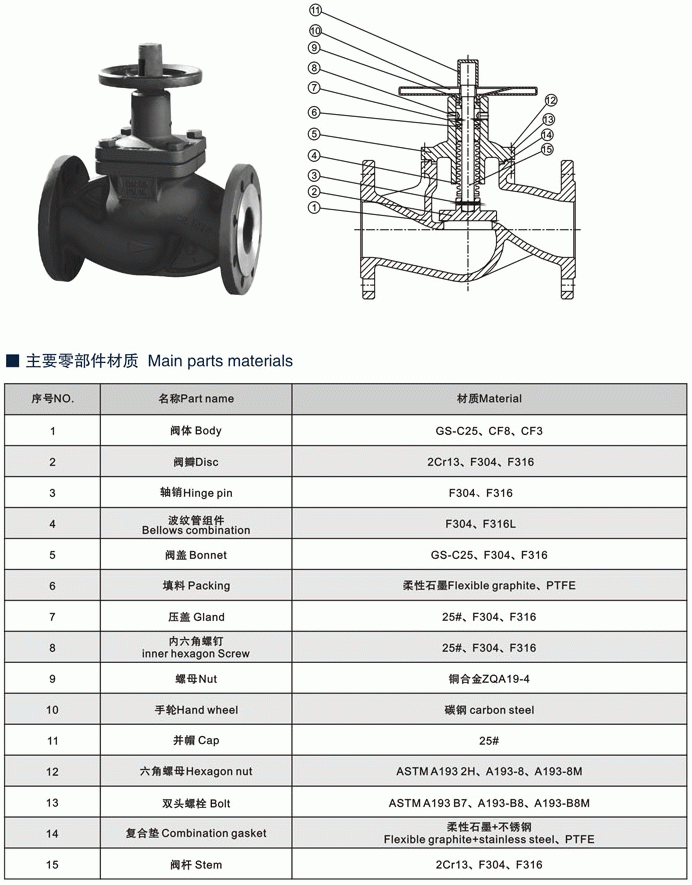 暗杆式德标波纹管截止阀是公司引进德国先进技术,采用先进的金属波纹管密封技术制造,高性能金属波纹管,波纹管密封截止阀采用波纹管密封的设计,完全消除了普通阀门阀杆填料密封老化快易泄露的缺点,不但提高了使用能源效率,增加了生产设备的安全性,减少了维修费用及频繁的维修保养,还提供清洁安全工作环境。适用于公称压力PN1.6-4.0MPa,工作温度-20~350℃的石油、化工、制药、化肥、电力行业等各种工况的管路上,切断或接通管路介质。