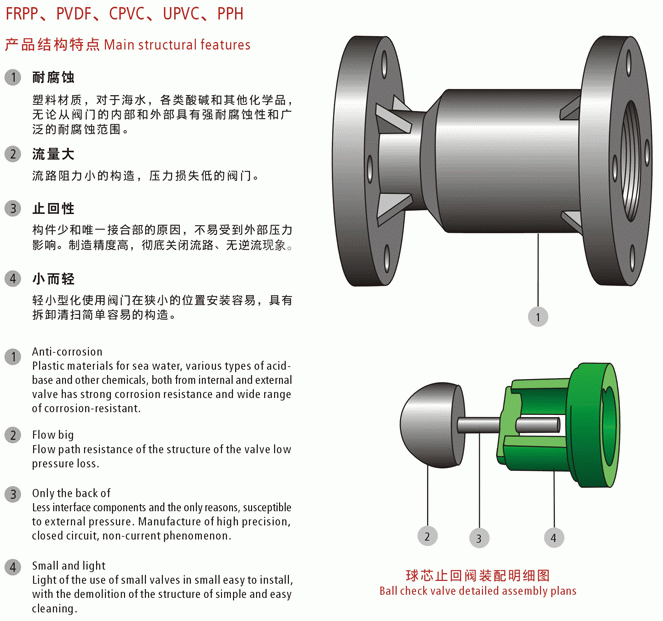 提示:本文中所有文字、数据、图片均只适用于参考,需要了解更详细的【球芯式塑料止回阀】参数、选型、价格等请联系我们,我们将竭诚为您服务!