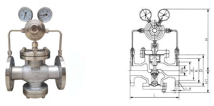 不锈钢气体减压阀外形结构图: