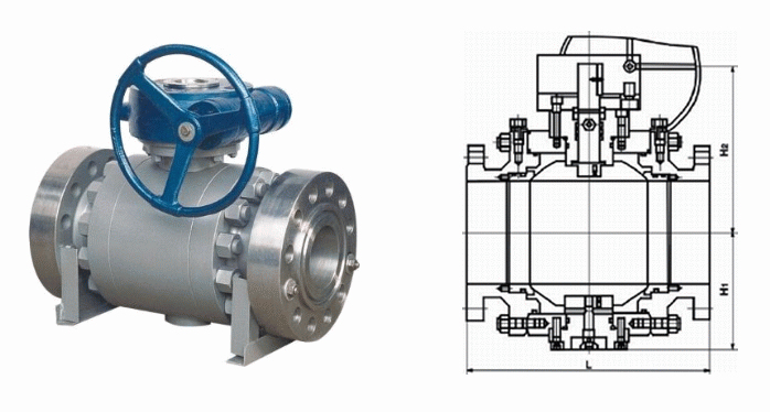 高压锻钢球阀外形结构图: