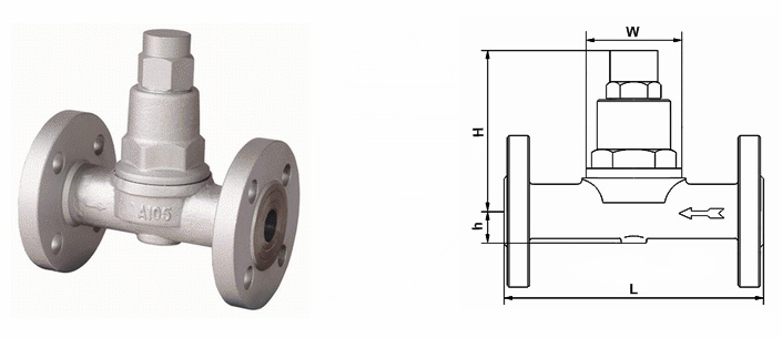可调双金属片式疏水阀外形结构图:
