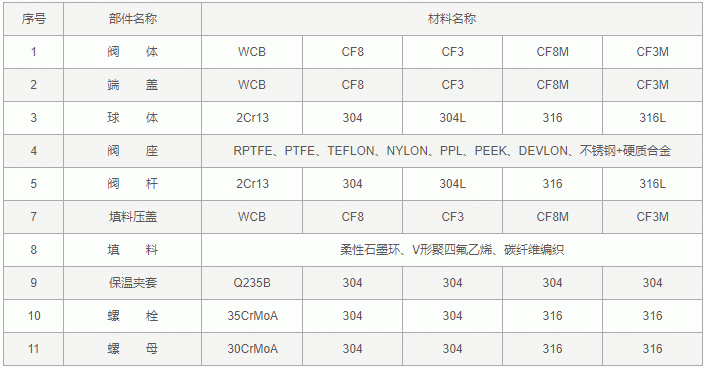 法兰保温球阀零件材料: