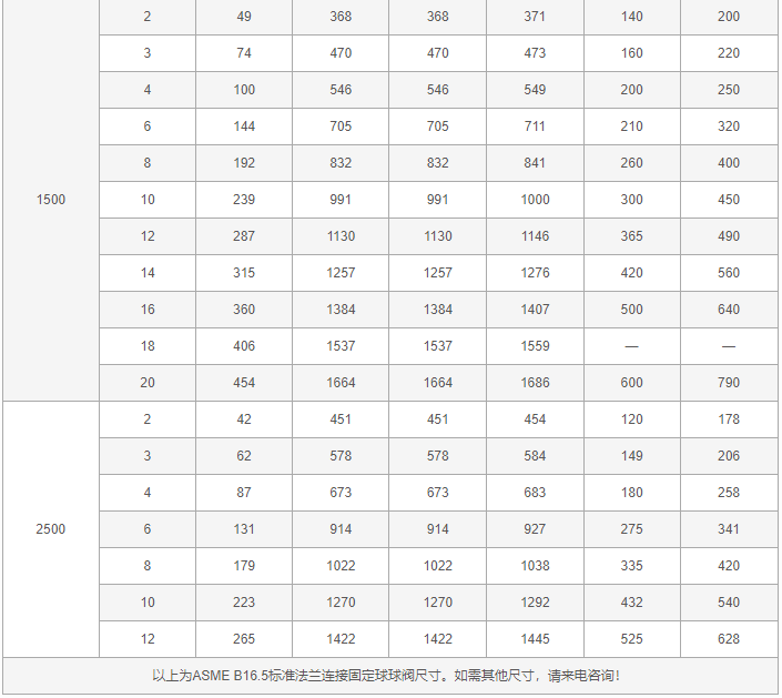 锻钢法兰球阀外形尺寸表: