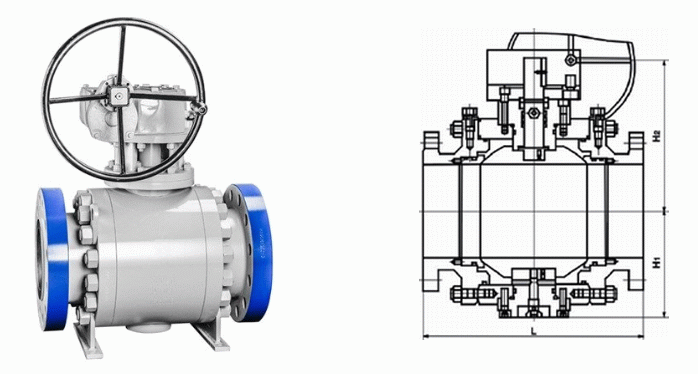 锻钢法兰球阀外形结构图: