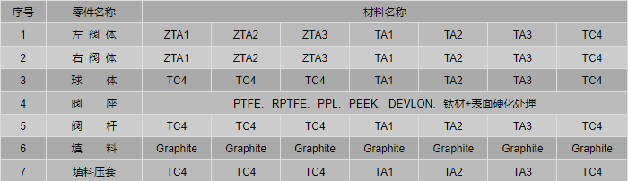 TA2、ZTA2钛合金球阀零件材料: