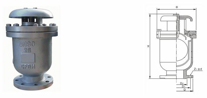 不锈钢快速进排气阀是一种由阀体、浮体、升降罩、大孔和小孔密封组件、阀盖、排气罩以及浮体罩和防护网等组成的给水管道复合式高速进排气阀,其同时具备大、小进排气孔,当管道空管充水时实现快速排气,当管道内产生负压时又能快速进气,且在工作压力下可排出管道中集结的微量空气,排尽气后具有自动封水功能。本产品有带防护网和不带防护网两种,如果安装在地上时,应在阀门顶部进排气通道外侧安装金属防护网。