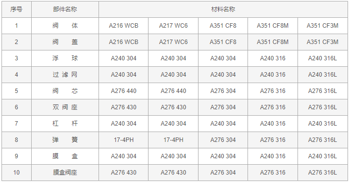 FT43H杠杆浮球式疏水阀零件材料: