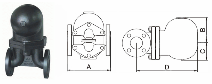 FT43H杠杆浮球式疏水阀外形尺寸表: