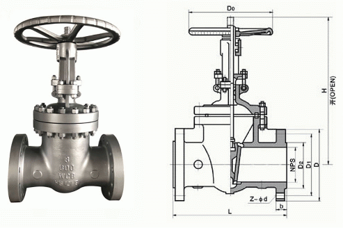 美标高压闸阀外形结构图: