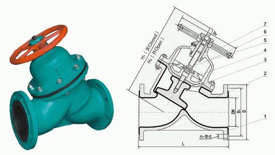 直流式衬胶隔膜阀外形结构图: