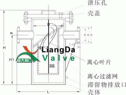 工作原理:当流体从“A”向流入壳体,离心器高速旋转,进入滤网的介质高速旋转产生涡流,促使流体中的非均相混合物,微粒加速沉降(相当于正常过滤速度的3-5倍),滤过液(气)体从“B”流出,达到过滤之目的。