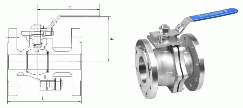 两片式德标球阀外形结构图: