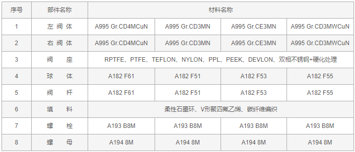 美标双相钢球阀零件材料: