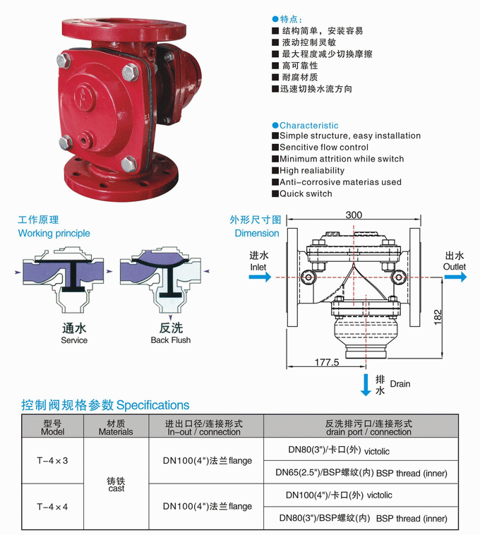 二位三通阀节省投资超强水力性能,工位转换无摩擦高可靠性,活动部件运行平稳定位准确防化学腐蚀材料,适合多种介质水流转向迅速,反冲洗效率高。