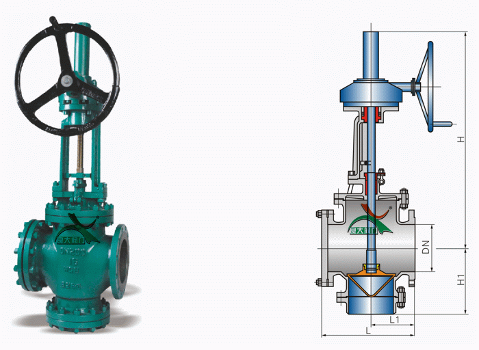 角式料浆阀阀瓣的密封面处设置与阀座的密封面相适应的导向切口,阀瓣与阀座密封面处阀瓣上设置高硬度的硬质合金物,其表面设置碳化钨表层。大大提高了密封面的耐冲刷耐腐蚀性能,从而延长了产品的使用寿命。密封副采用线密封,保证密封,保证密封的可靠性,并可防止结疤。阀门设有防转机构,保证阀杆在开启和关闭时只做直线运动,不做回转运动。达到“三耐一防”高性能的要求,即耐磨、耐压、耐冲刷、防止结疤。阀门驱动方式有:手动、气动、电动、齿轮传动可供用户选择。