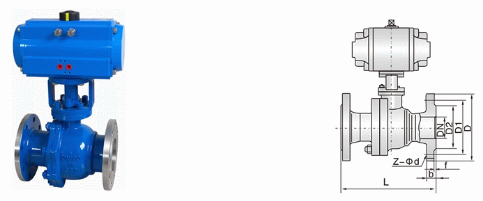 气动法兰球阀外形结构图: