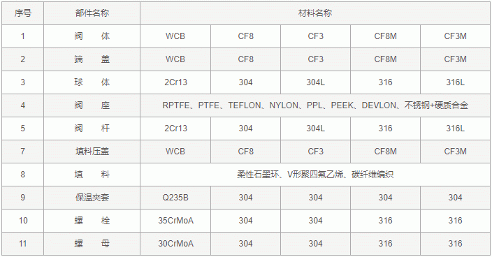 碳钢保温球阀零件材料: