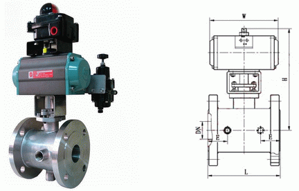 气动保温不锈钢球阀外形结构图: