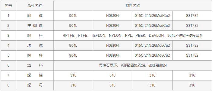 904L不锈钢球阀零件材料:
