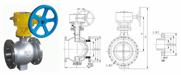 不锈钢偏心半球阀外形结构图: