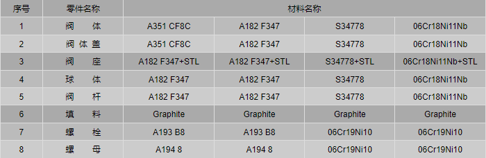 CF8C、F347不锈钢球阀零件材料: