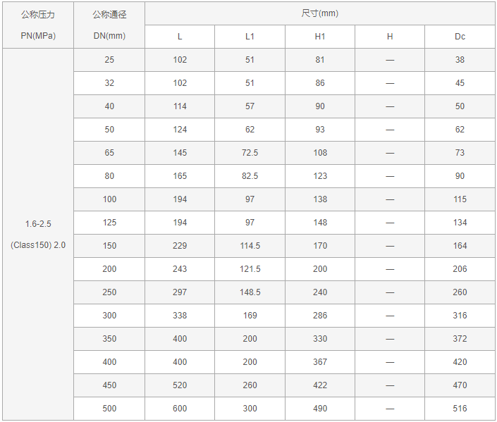 口径:DN25-500