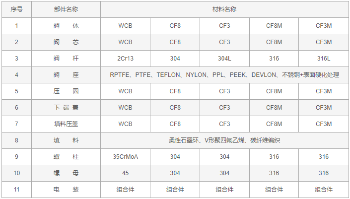 电动对夹V型球阀零件材料: