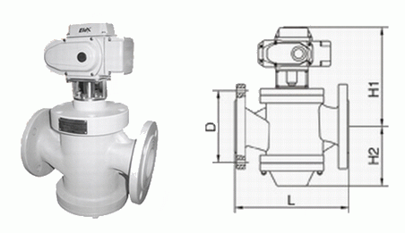 8、三通调节阀分为T型和L型,对介质进行分流和合流,选型时根据现场工况进行确定。