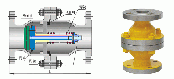 氨用限流阀是一种采用弹簧预载荷的自动控制阀门,主要利用弹簧预紧力和介质运行时的流速压力比,来控制阀门内部动作元件的启闭。限流阀主要由阀体、阀盖(法兰连接时)、预载荷弹簧、阀瓣和阀杆等组成,当管道内介质流速超过设定值时,或者当管道或附件损坏流速过大时,阀门即行自动关闭。阀门关闭后,人工无需进行启闭干预,故障或流量正常后,阀门即自动开启,管道恢复正常运行状态。