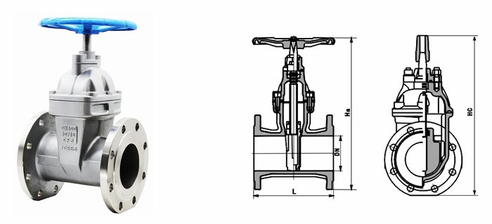 不锈钢软密封闸阀外形结构图:
