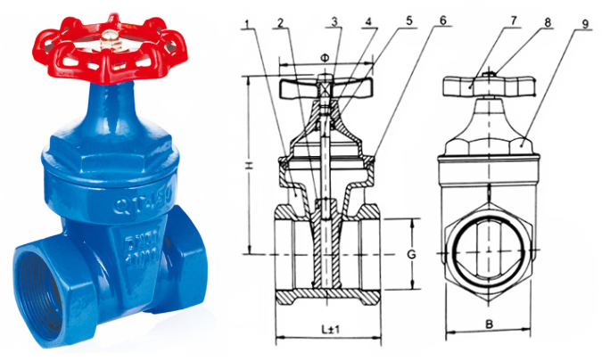 丝扣软密封闸阀外形结构图: